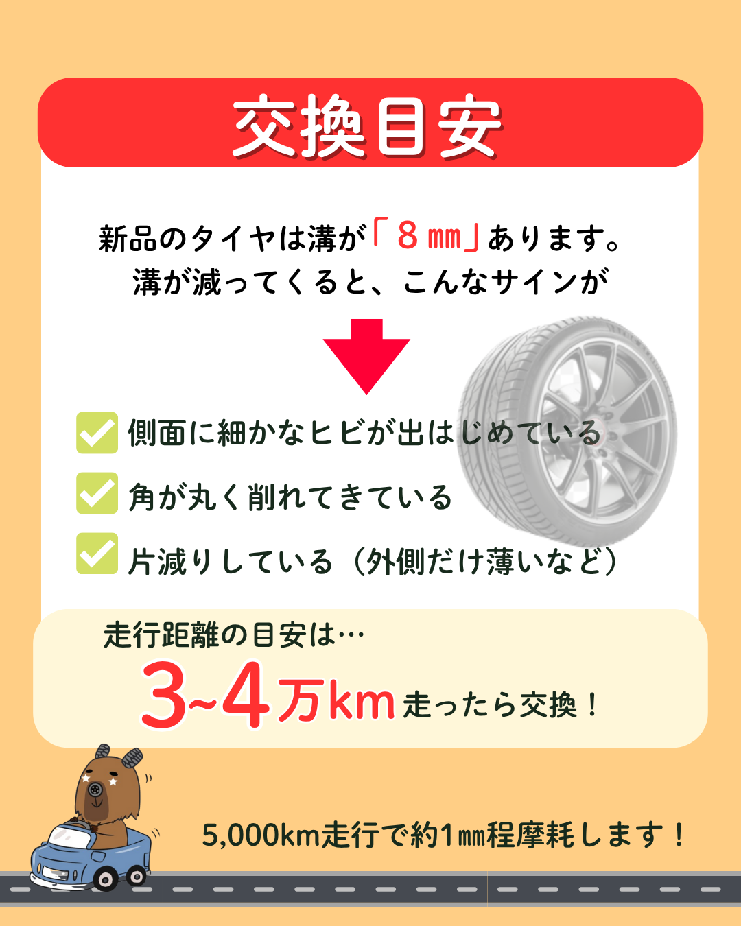 状態が悪いと止まる距離や雨・雪での安全性に大きく影響します⚠️