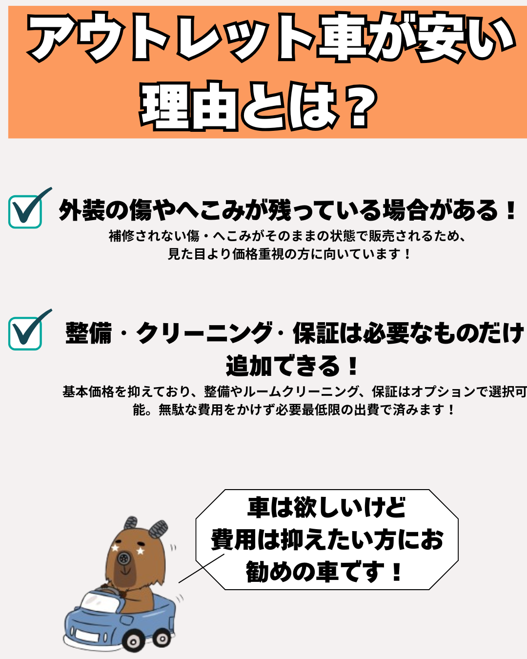 🔍 アウトレット車が安い理由とは?