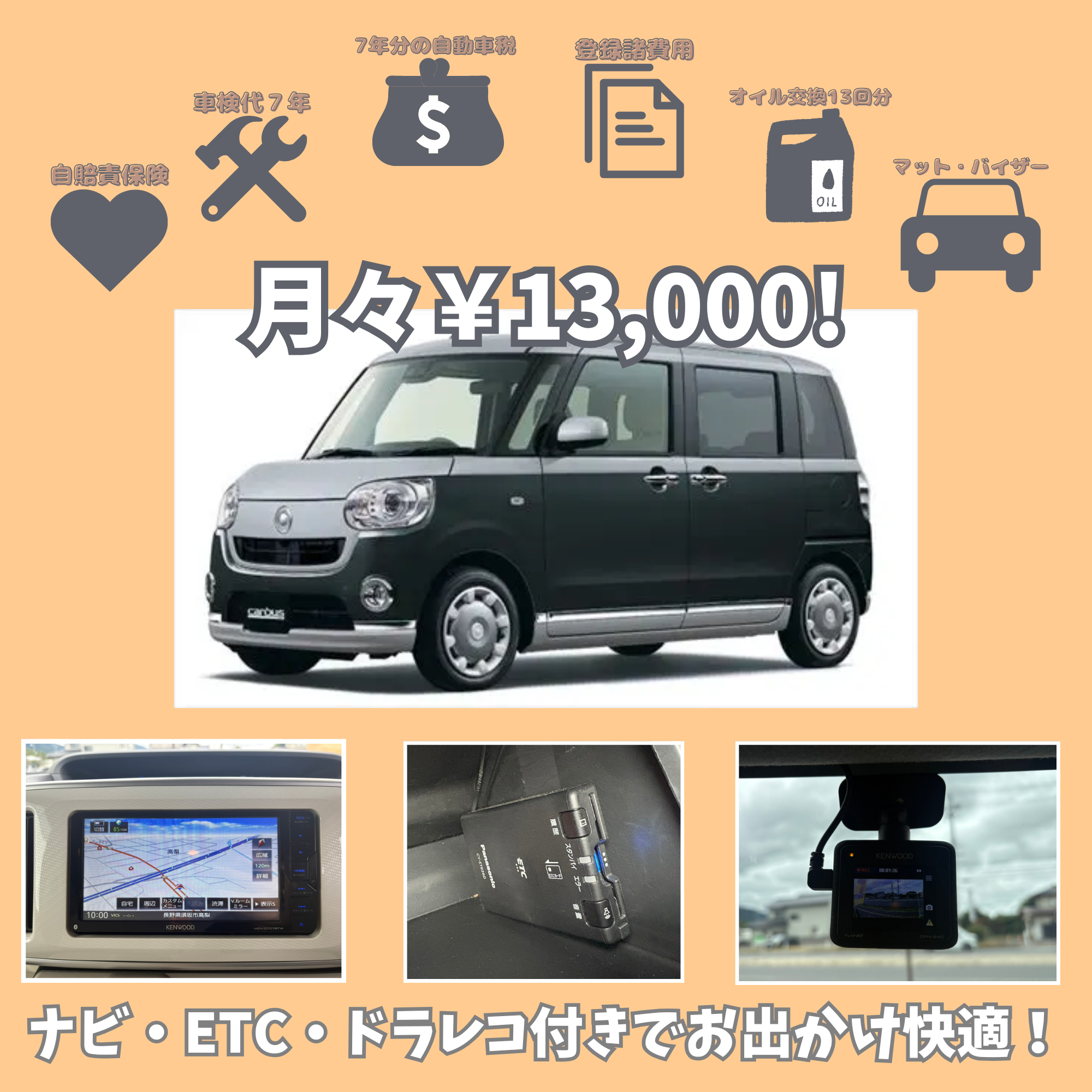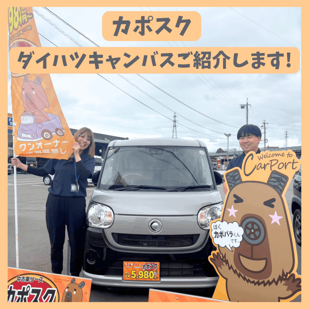 🚗✨【月々13,000円】で乗れる!おしゃれキャンバス登場✨🚗 🔹R2年式 :ダイハツ ムーヴキャンバス X SAⅡ 🔹人気カラー:ブラックマイカメタリック × スムースグレーメタリック 🔹走行距離:63,000km 🔹ワンオーナー車で大切に乗られてきた1台✨ 📌装備も充実📌 ✅ 両側スライドドアで乗り降りラクラク! ✅ プッシュスタートでスマートに始動♪ ✅ ナビ・ドライブレコーダー・ETC付きでお出かけ快適◎ ✅ 安心のスマートアシストⅡ搭載🚨 ✅バックカメラで駐車も安心! 💰ボーナス月55,000円込みで月々13,000円(税込) 中古車リースで手軽にカーライフを始めませんか?🚙💨 気になる方はお早めに📩LINEor📞お電話ください♪
