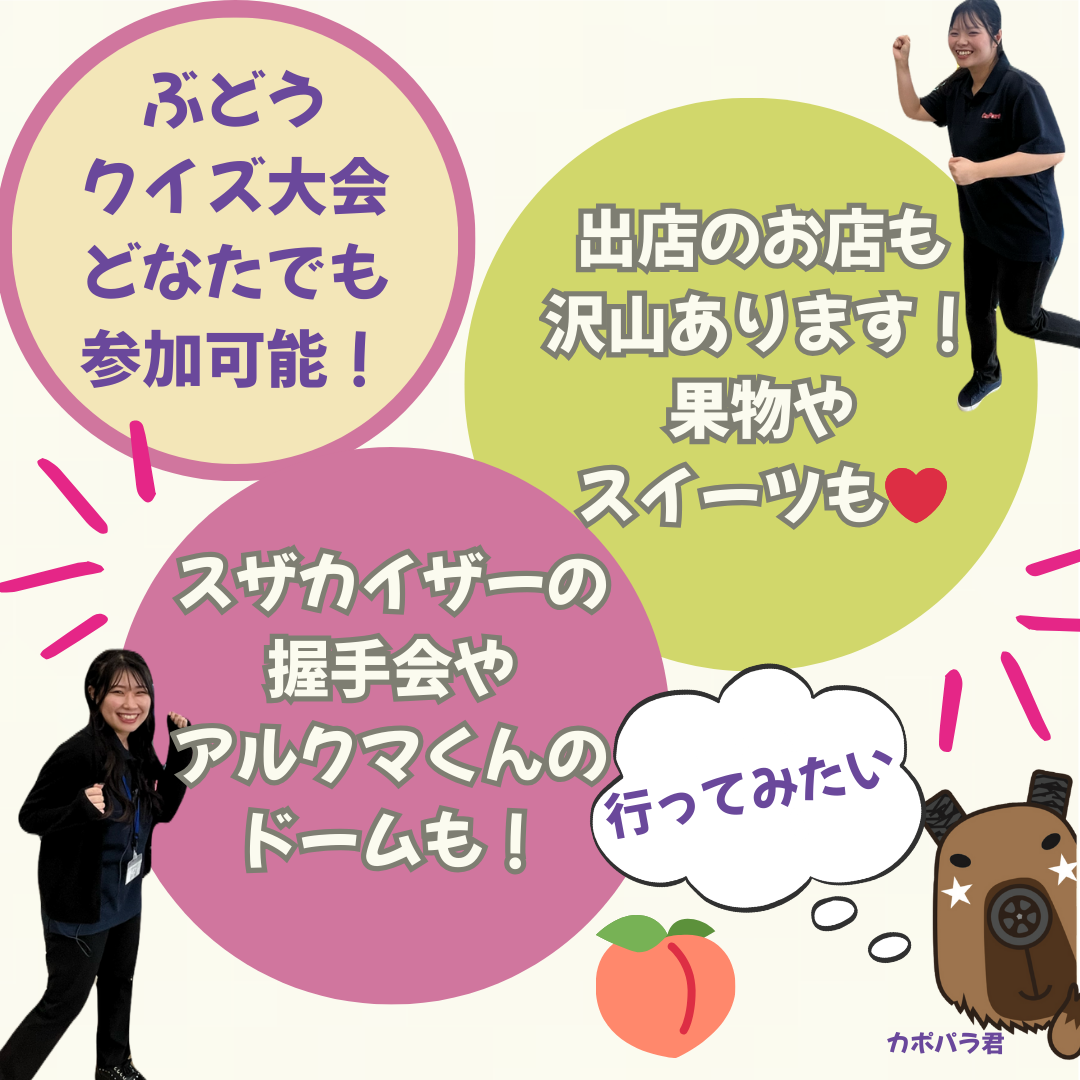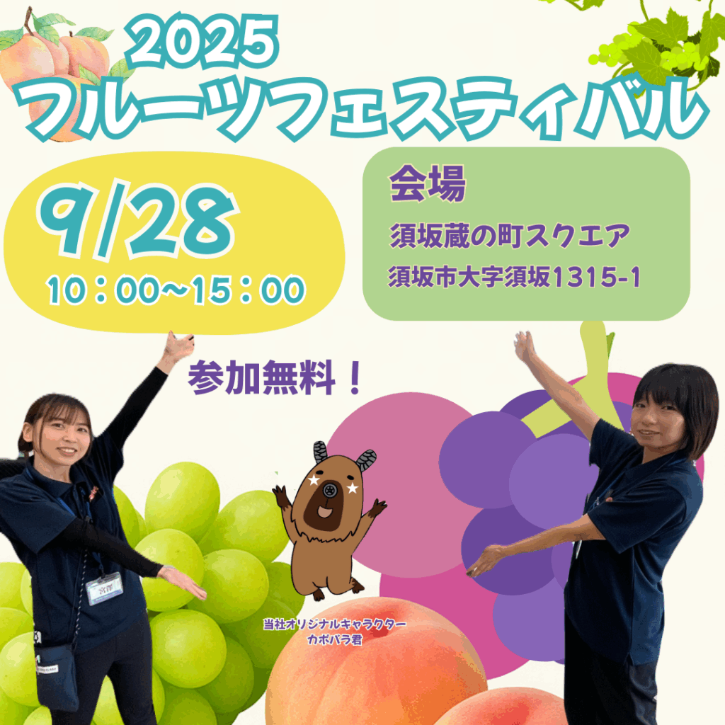 皆様こんにちは!SNS担当の伊藤です😊 須坂市で明日開催されるフルーツフェスティバルをご紹介します✨ 🍑 開催日:2025年9月28日(日) ⏰ 時間:午前10時~午後3時 📍 会場:須坂中央駐車場広場 🍇 見どころたっぷり! ・旬のフルーツが味わえる ・ご当地ヒーロー スザカイザー の撮影会📸 ・人気キャラ アルクマのふわふわドーム 登場 ・ぶどうクイズ大会 では入賞者に旬のぶどう詰め合わせプレゼント🎁 ご家族やお友達と一緒に、ぜひお出かけしてみてくださいね! また、来月の10月4日・5日には当社でお客様感謝祭を開催します! 屋台の出店や野菜の詰め放題、 吹奏楽などのイベントが盛り沢山です! こちらにもぜひ足をお運びください。 皆様のご来場お待ちしております!